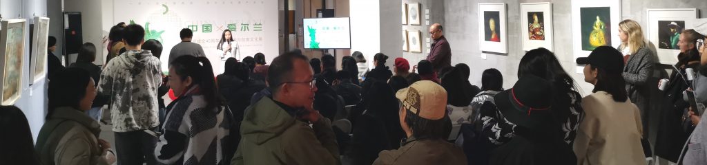 爱尔兰驻沪总领事特雷泽·希利在星期五晚上的开幕酒会上致辞,并介绍了五位参展爱尔兰艺术家的作品。