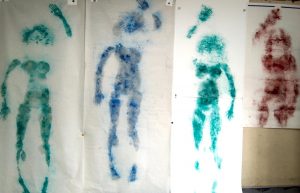 我练习瑜伽放松术(Yoga Nidra)已经10年了,这是一种平躺在地上进行的冥想,可以有效地将头脑从昏昏沉沉转为清醒,改善睡眠,以及有助解决其他让人困扰的问题(每日游泳也可以同样有效,不过有时候找到游泳池可不是件容易的事)。在观澜醒来的第一天,我开始练习瑜伽放松术,将注意力集中在身体和地板的接触上,身体和地板,身体和地板的接触……我一下子明白了,我知道我要做什么……身体印画。