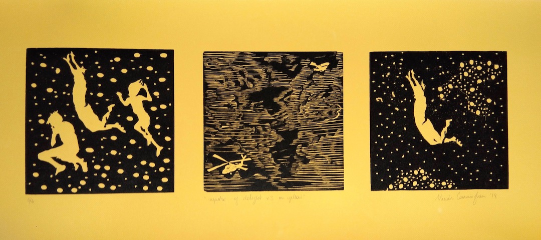 6/6/ 喜悦 x3 黄色底色 瑞莲 2018 35 x 90cm