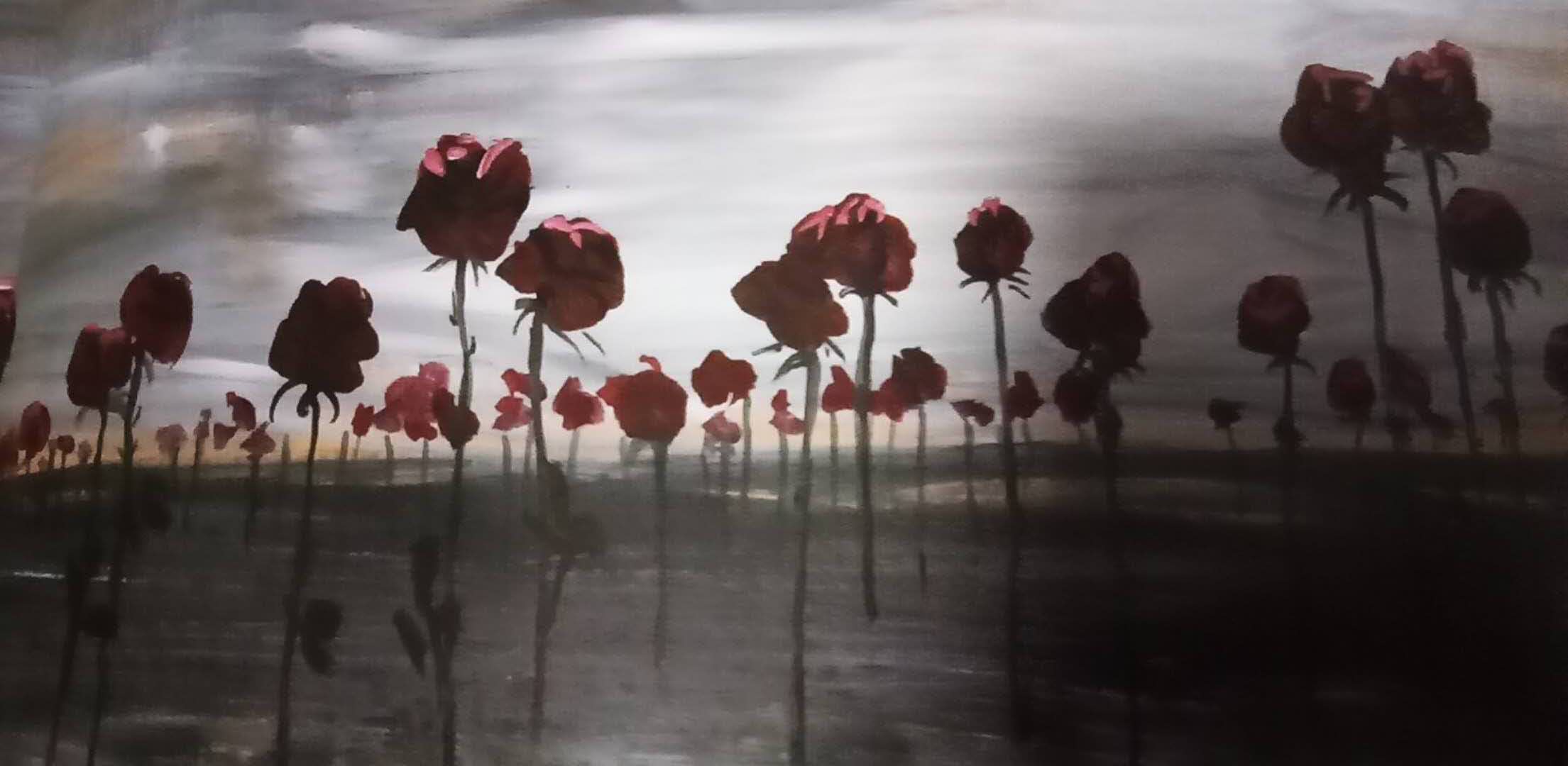 张琼飞   《 狂野玫瑰》    纸上丙烯   228 x 115 cm    2016