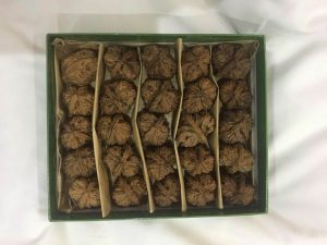 Lin很高兴遇到了一个恰好种核桃的参观者。今天他特地到26展位,留下了一盒“文玩”核桃作为礼物。