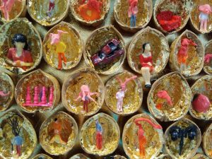 Nancy Toomey Fine Art(旧金山)代表Monika Lin已有多年。我和Fion Funn受邀在这次活动中一起参展。Lin展出了镀金镜框的《思考者胡桃系列》,几十个小人像,每个小人都摆在半个镀金的胡桃壳里。这个系列是基于这样一个想法:童话故事在多大程度上影响了我们的社会。在捷克斯洛伐克,灰姑娘故事的魔力来自于胡桃,而不是仙女教母。
