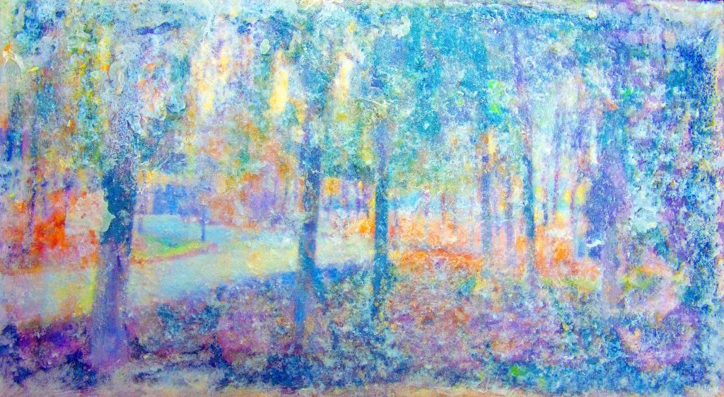 “延伸”,(银杏系列)50 x 150cm  布上油画  倪芙瑞莲 2015