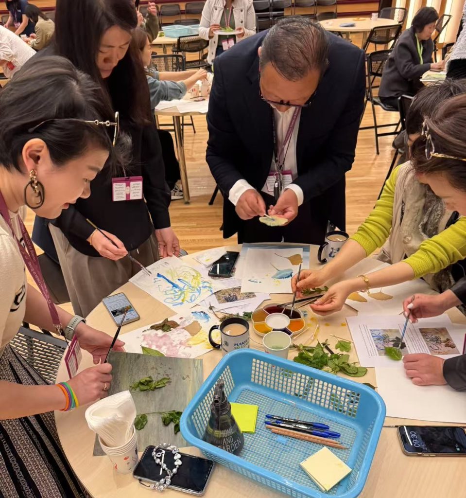 2025年4月11日,为庆祝”人类、地球与使命”周(‘People, Planet Purpose’),我们为ISB北京顺义国际学校的家长们举办了一场特别的”跨越代际的树的故事”工作坊。工作坊从身份认同、价值观和文化习俗等角度探索了树木的故事。家长们选择了对其家庭具有特殊意义的词语,并用树叶拓印装饰了四周环境。
