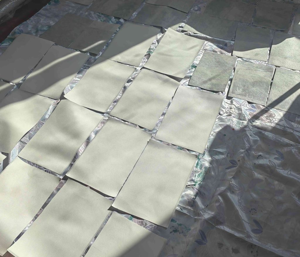 据说甜菜根色素极易褪色,但将经过媒染处理的色样放在窗台阳光下曝晒两周后,色彩变化与褪色程度可以说微乎其微。