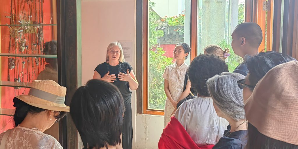 The afternoon began with a guided tour of the exhibition, emphasizing the vital role of collaborative skills in education ( and in life ) as a tool for fostering resilience. I believe that art-making serves as an accessible medium for this development. Two collaborative artworks were highlighted from the International School of Beijing (ISB) from Nov 2024, the time of my artist residency at the school : The Wall of Whispers and Nestled Within, alongside my own socio-eco art practice, Memory Palace of Tree Stories.