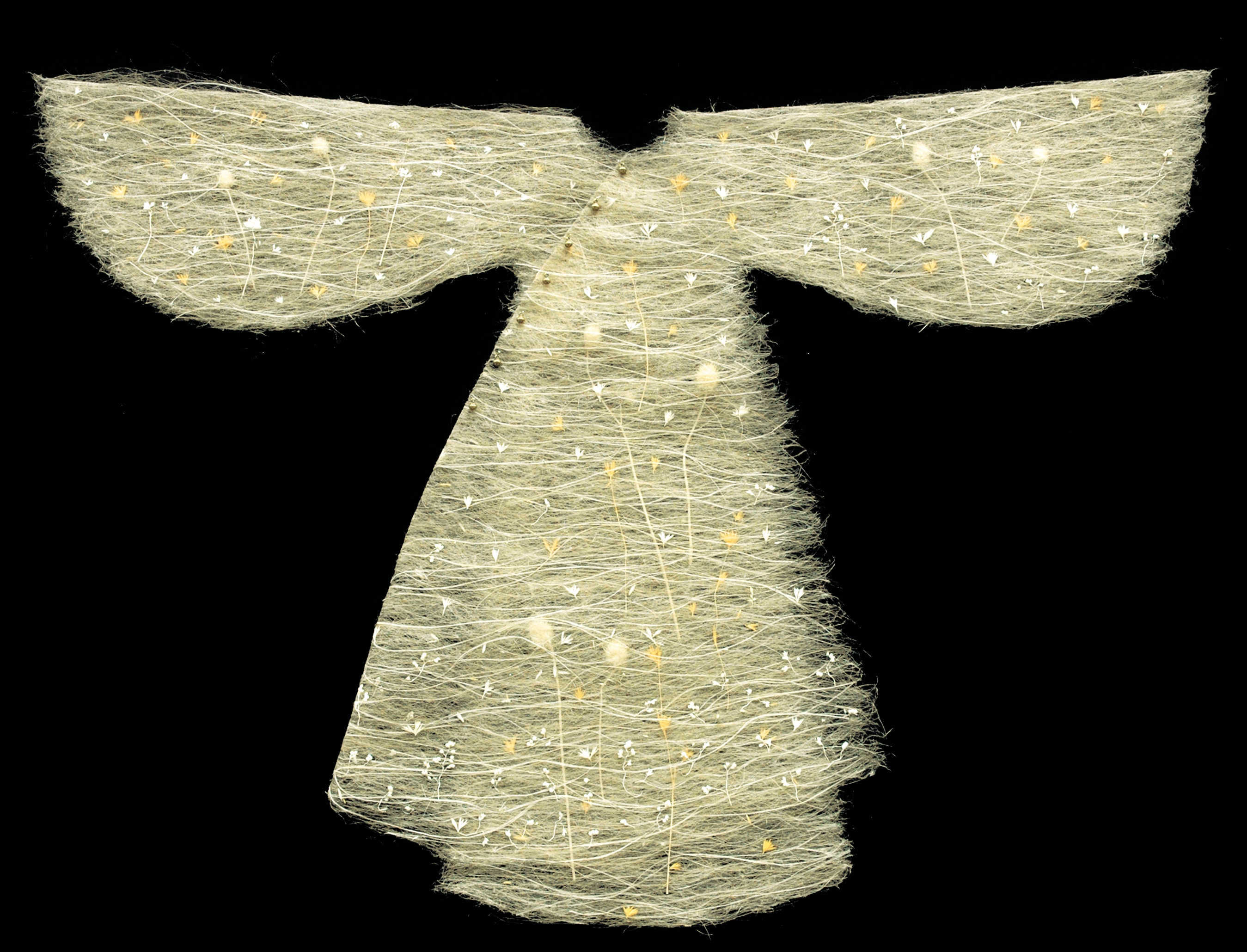 Chen started making the fiber garments when she worked in Vienna decades ago. The artist often treats heavy things lightly such as portraying history in floating bright forms of Ming Dynasty clothing.