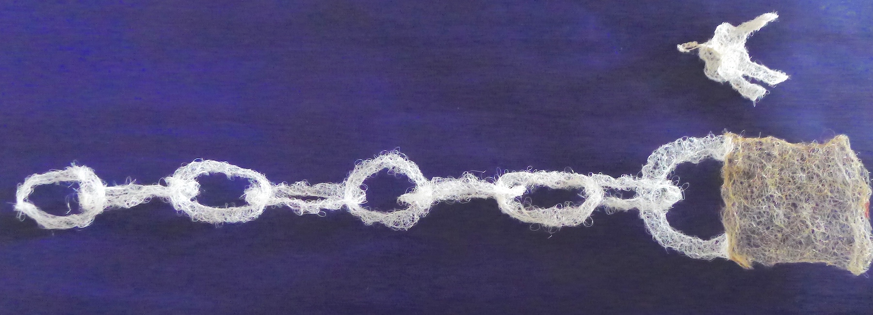 Being able to see through own genome and acknowledging it as your “coded” self as well as your personal story or experience, this screen of transparent knitted hair frames your world view. Holding on to the idea that it is my perception, acknowledging my referenced life (family traits and other things that are contained in my genome) and personal experience, this is what is framing my view of the world.