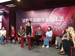 The afternoon began with a forum discussing the expansive subject ‘Feminist Art: Present and Future’ with curator Zhen Guo moderating Wu Xiaobin manager of culture BBK group,with other panel members artists Franziska Greber, Li Xinmo, and myself, and supporting academicians Tsao Xingyuan, Guo Yaxi and Ai Leier.
