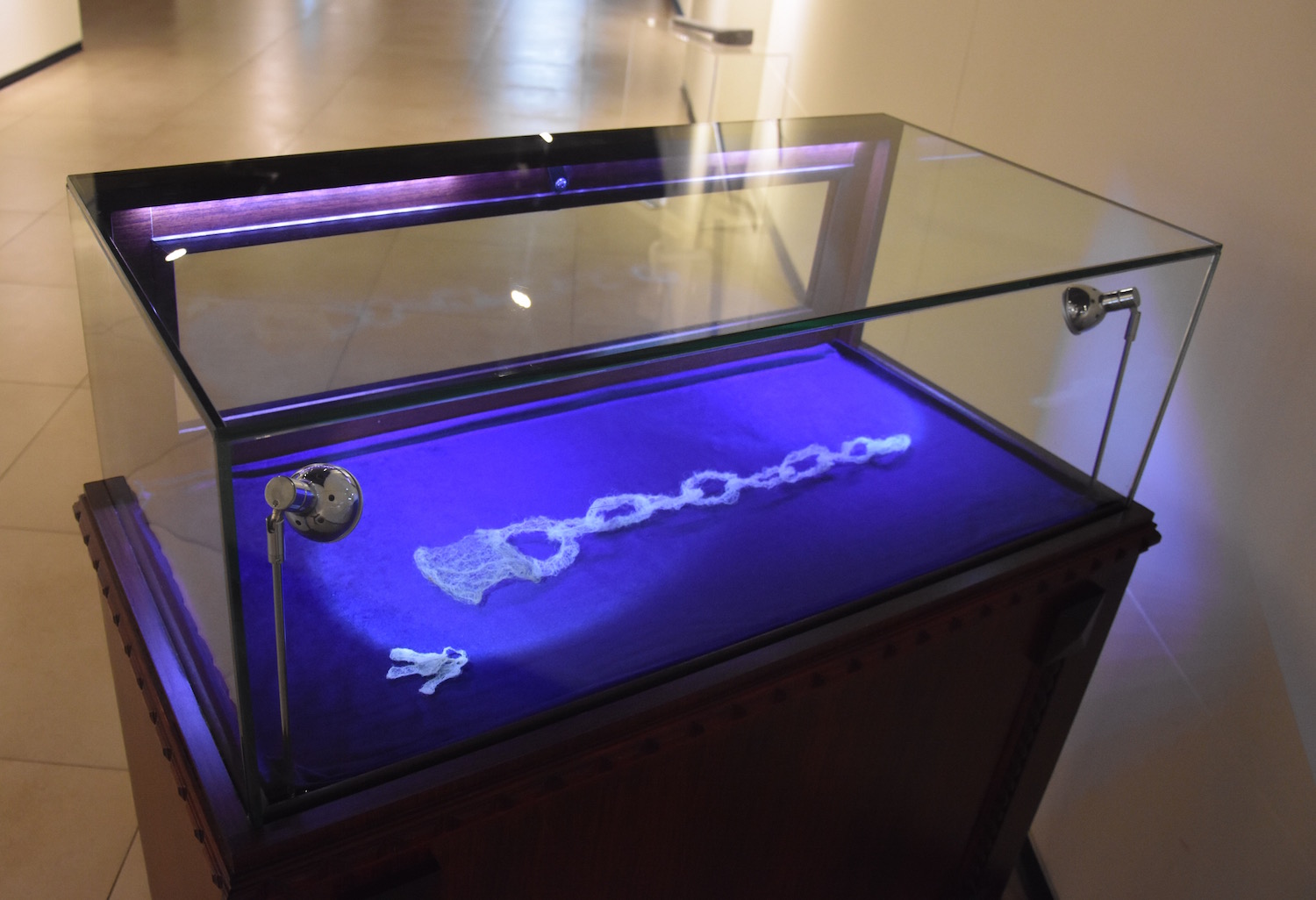 Heidi Lynn our impressive assistant guided colleges and school tours also. This was an opportunity to talk a little about the curation of the exhibition, for example how Atsuko Nakamura’s latex dress with skin like sutures echoed the nearby stitches of Lin Jingjing’s rose petals. After taking visitors past two expansive floors of the exhibition many people would linger for more questions and further conversation.