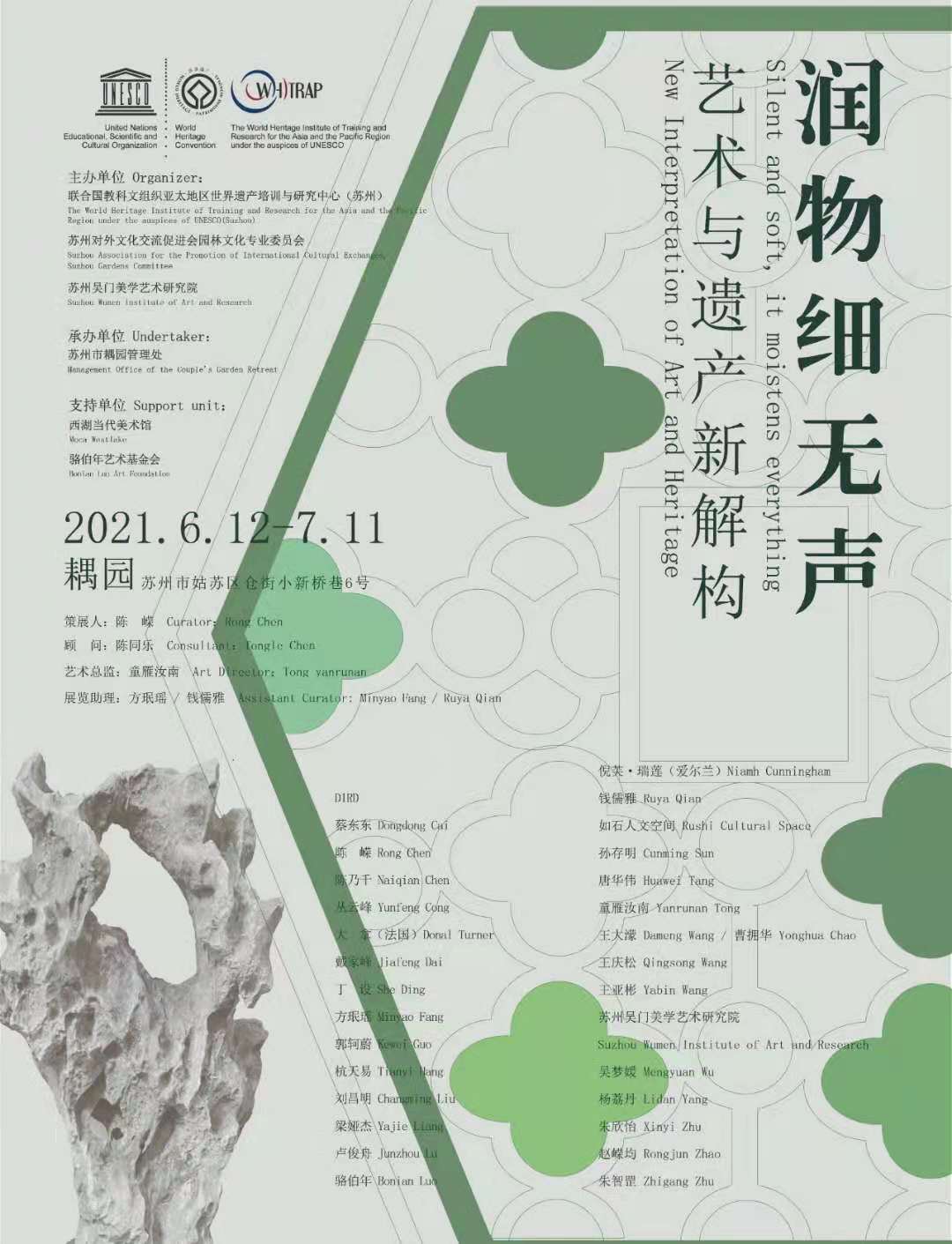 The exhibits involve sculpture, painting, calligraphy, photography, video and installation. These works of art use contemporary art language and garden heritage dialogue, in the deep courtyard of classical gardens, “moisten things silently” into the garden, into the world cultural heritage.