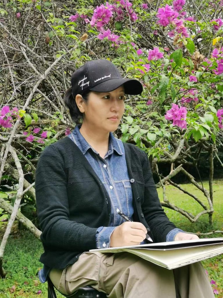 I first met Huang Yan of Hani nationality at the residency two years ago. She works in the Cultural Sector and is director of the Xishuangbanna Artists Association. Her deep reverence for the natural world is apparent in her work.