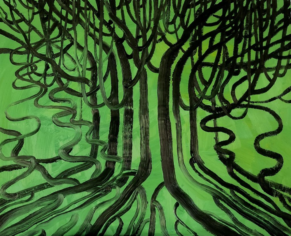 The inspiration comes from the growth process of the main plants in the rainforest. These trunks and vines may not seem to belong to the same subject, but they do. They are also breathing the air from nature and absorbing the nutrients of the same earth. Their wild growth is the rhythm of life. I use lines to describe their postures. From the left and right directions of the picture, they are different trees and vines. From the top and bottom relationship of the picture, they are a symbiotic body.