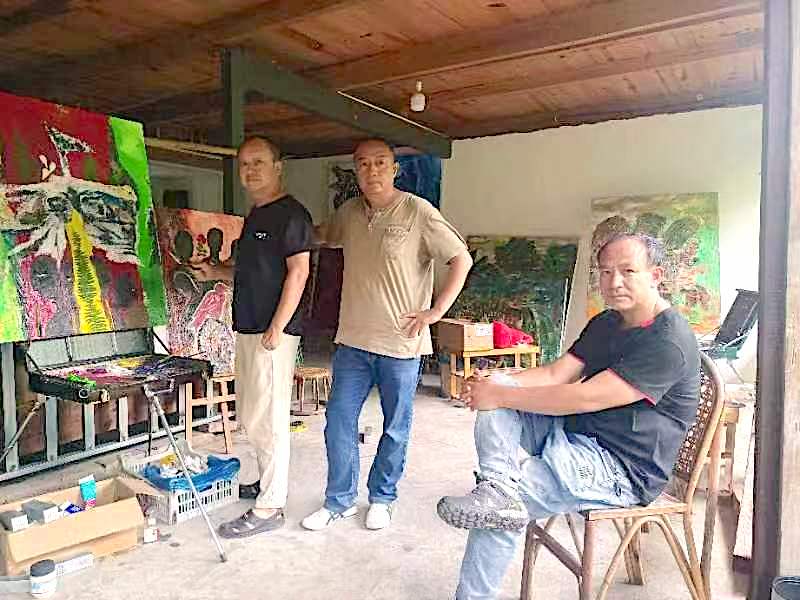At the helm of the ship was prof Gao Xiang from Kunming University . Together with Director Zhou Rui (Cultural department Jinghong) they brought over 18 artists including postgrad students from Kunming to The Octagon Lodge in Menglun.