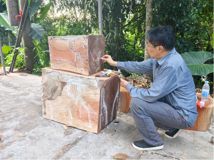 Chen Wen You makes science accessible to the public through art and design at Xishuangbanna Tropical Botanical Gardens XTBG. He often came to eat with us in the evenings . He facilitated many aspects of the residency with XTBG including arranging studios for some of the artists , wood for the wood sculptors and of course the exhibition which is currently running at the Enviromental and Education Centre at XTBG.