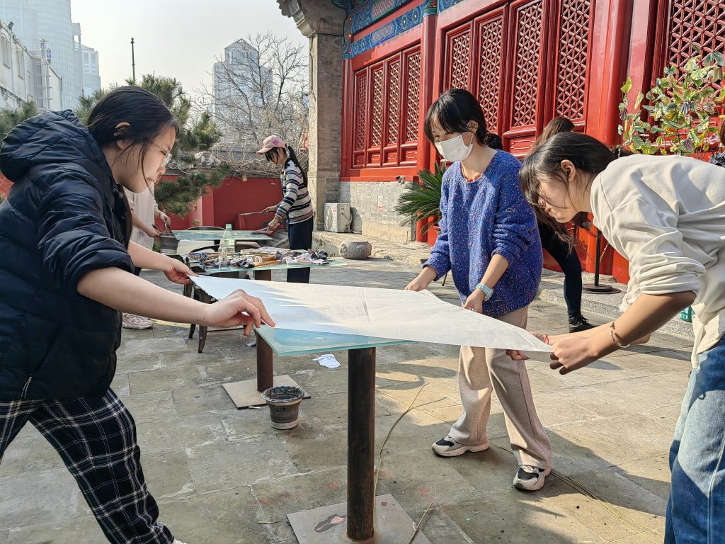 Last weekend at DongYue art Museum I worked with the wonderful teachers Huang Xinyi and Song Dan from CAFA art Education and held workshops for younger students using eco friendly materials of traditional Chinese art , rice paper and Chinese water colour. We even experimented with home made plant based pigments and students weaved round frames made of willow twigs for the circle paintings.