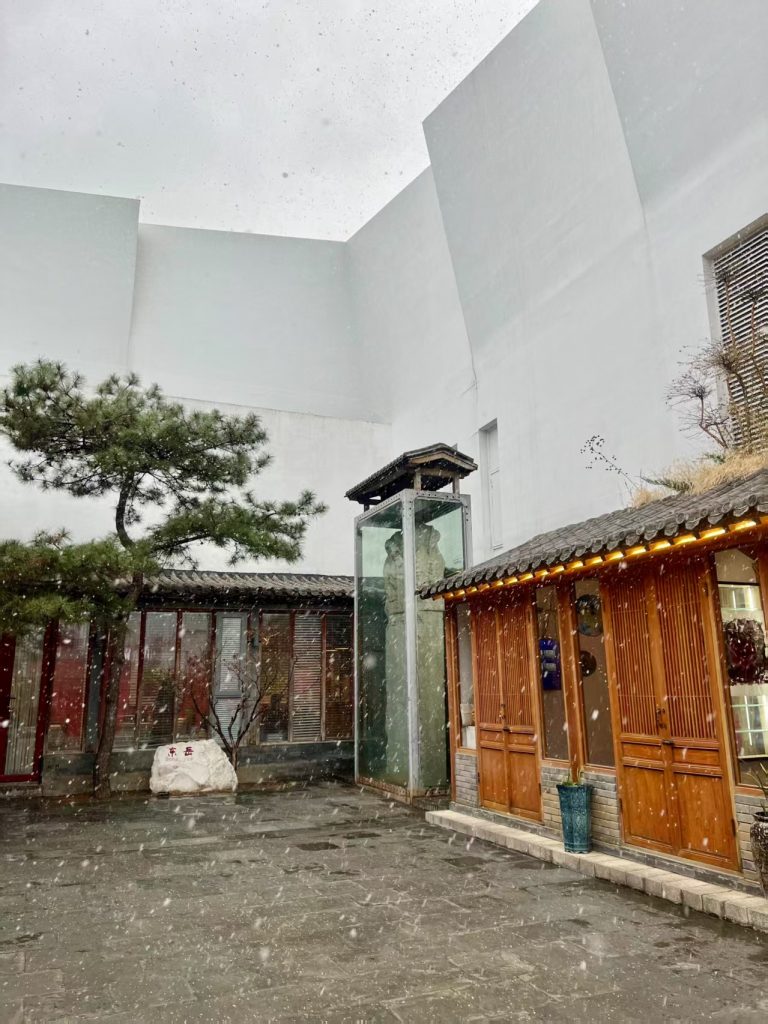 The ancient Daoist venue of Dongyue Art Museum was built on the grounds of a Yuan Dynasty temple to Lei Gong God of Thunder. It’s curator Mr Yuan QiuLai has played an important part of my life in China over the past dozen years hosting my first solo exhibition An Eastward Calling 2014. We also had three previous duo exhibitions with Chinese artists Reciprocal Plane with artist Huang A Zhong 2015, Infinite Entities Life and Nature with Geng Xin 2017, The Pattern that Connects with Ma Liangfen 2020 and Sino-Irish group exhibitions Meditations – IRISH WAVE 2015 and Odyssey the Return in 2019. Towards the last part of the opening reception , although it didn’t Thunder and Rain like it did just after for the solo exhibition in 2014 , this time it snowed.